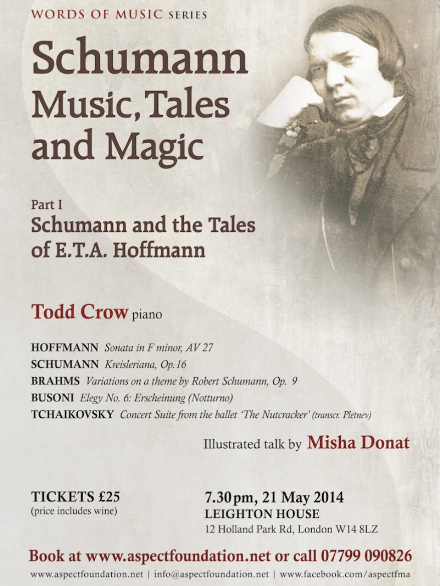 ‘One hardly dares breathe when reading Hoffmann,’ said Schumann of the great writer in whose work the borderlines between dream and reality, art and life, the natural and the supernatural so often become blurred. From Hoffmann, Schumann borrowed the titles of some of his best-known piano pieces – Kreisleriana, Fantasiestücke, Nachtstücke – while the young Brahms signed some of his early compositions ‘Kreisler Junior’, in homage to the fictional musician created by the author. Hoffmann’s tales inspired ballets by Tchaikovsky (The Nutcracker) and Delibes (Coppélia), as well as operas by Offenbach, Busoni (Die Brautwahl) and Hindemith (Cardillac). Hoffmann himself was also a composer, and his proto-Romantic opera Undine was praised by Weber. His influence as a writer, meanwhile, was felt as far afield as France, Russia and America, those who fell under his spell including Baudelaire (for whom he was simply ‘the divine Hoffmann’), Balzac and Maupassant, as well as Dostoevsky, Pushkin and Gogol, and Edgar Allan Poe.
